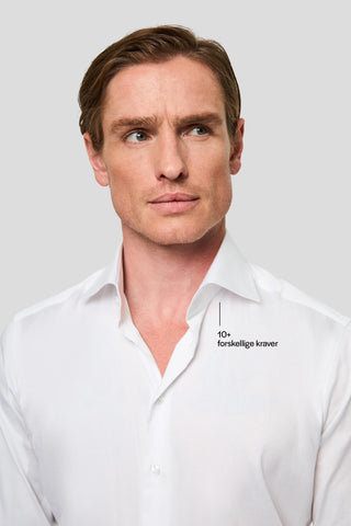 Vores skræddersyede skjorter starter fra 1.199,- og tilbydes i over 350 eksklusive bomuldsmetervarer – fra silkebløde egyptiske vævninger til moderne italienske kvaliteter med stretch. Hver skjorte designes efter dine ønsker, så du selv vælger stof, pasform, krave, manchetter, knapper og eventuelle initialer – for et unikt produkt skabt til dig.